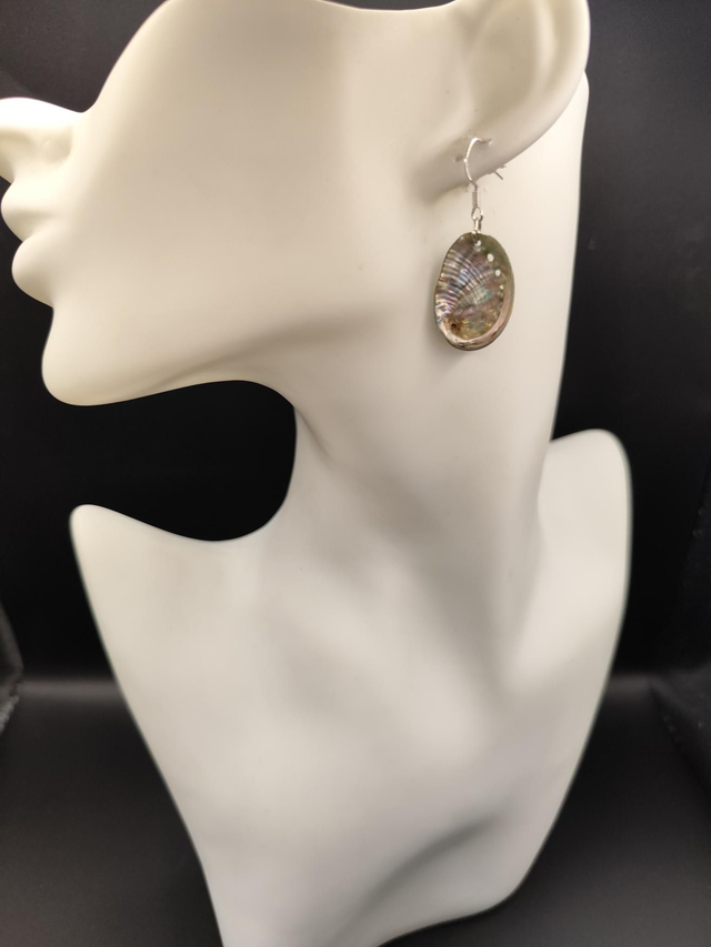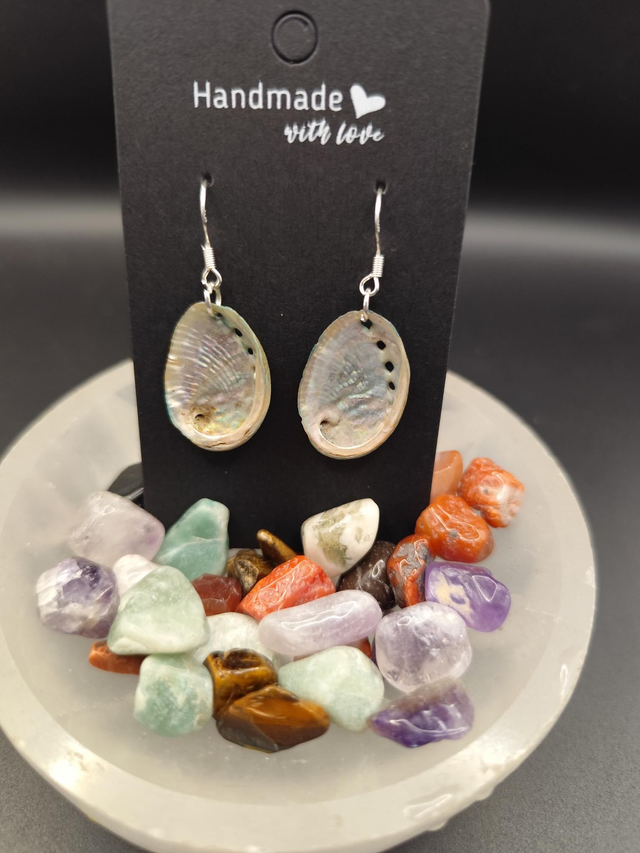 Hand crafted Abalone earrings, with 925 silver hooks. Nice and shiny fronts and a natural (un polished) back of the shell. Lovingly made on board narrowboat Deltic.
