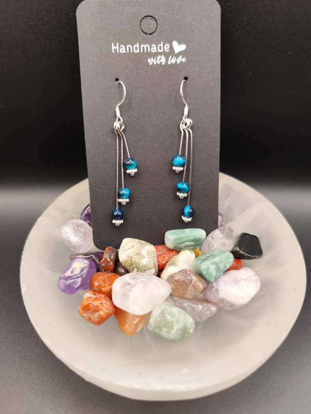 Hand crafted Blue Tigers Eye earrings, with 925 silver hooks. Lovingly made on board narrowboat Deltic.