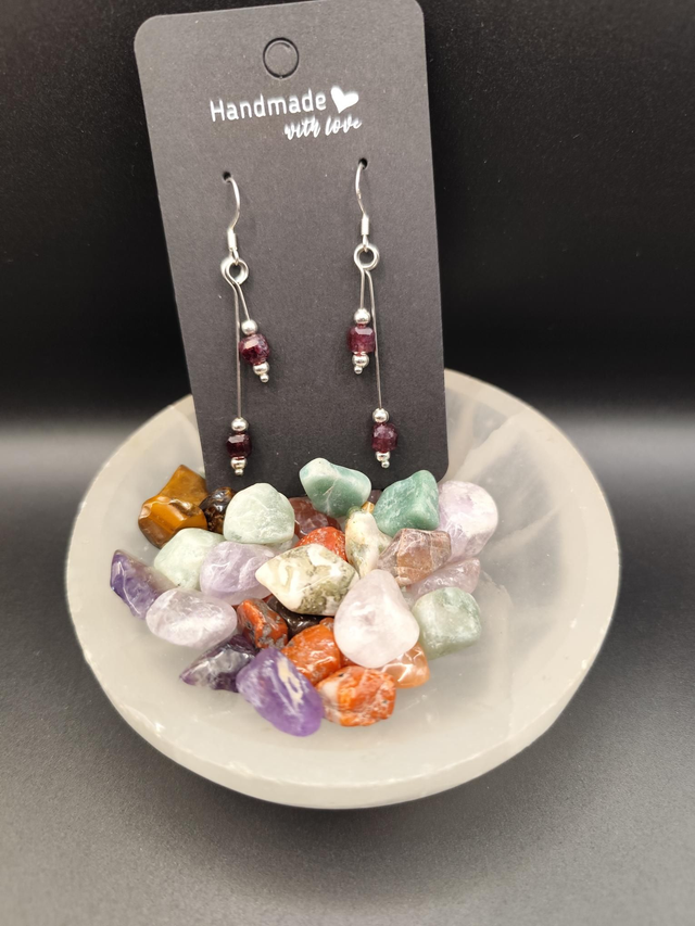 Hand crafted Garnet earrings, with 925 silver hooks. Lovingly made on board narrowboat Deltic.