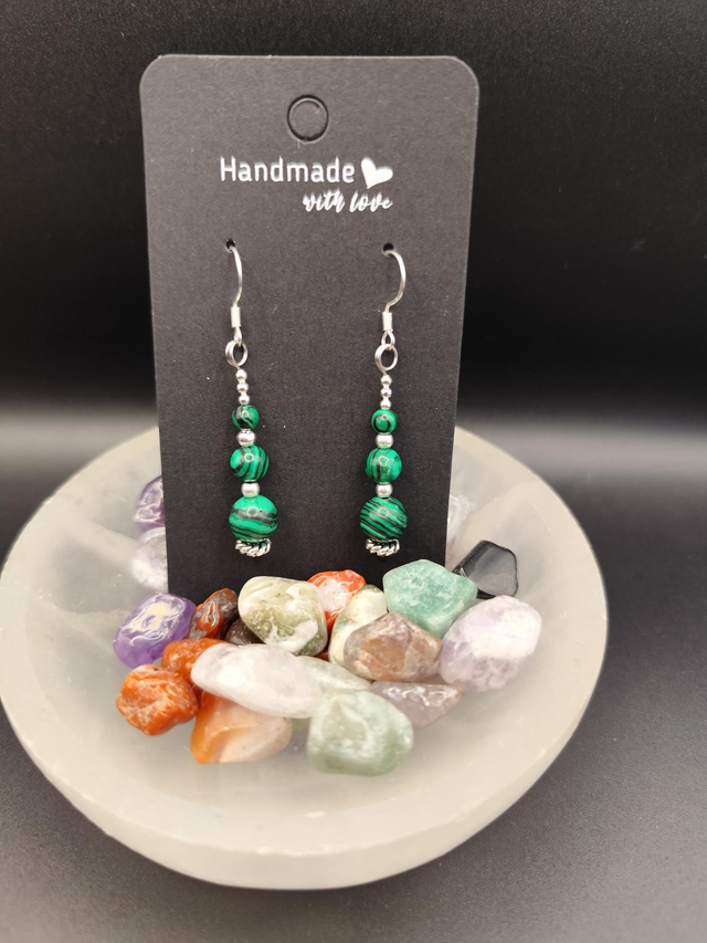 Hand crafted Malachite earrings, with 925 silver hooks. Lovingly made on board narrowboat Deltic.