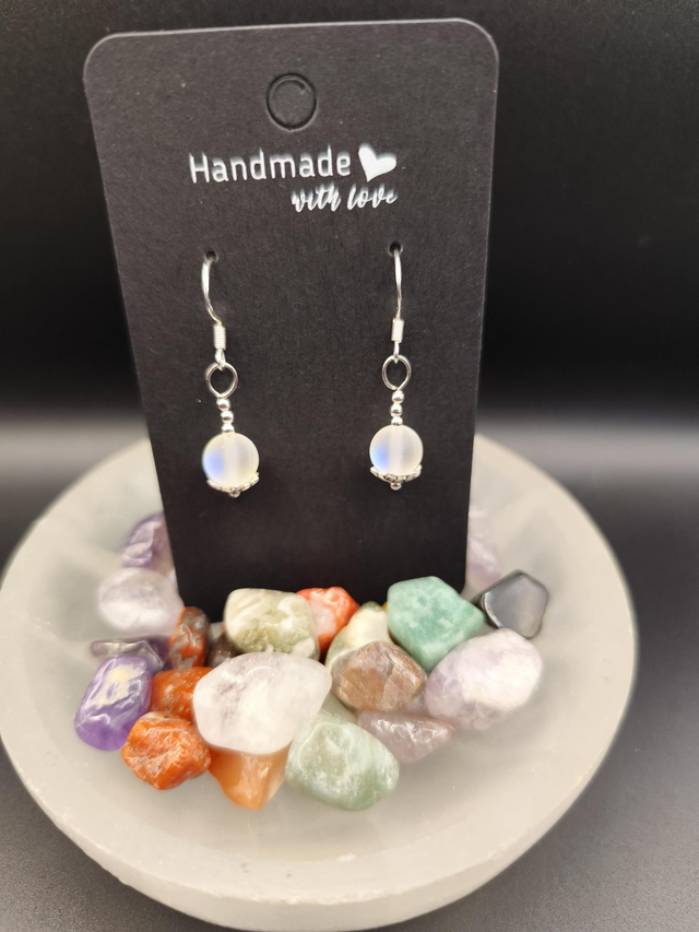 Hand crafted Moonstone earrings, with 925 silver hooks. Lovingly made on board narrowboat Deltic.