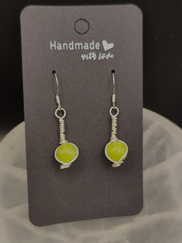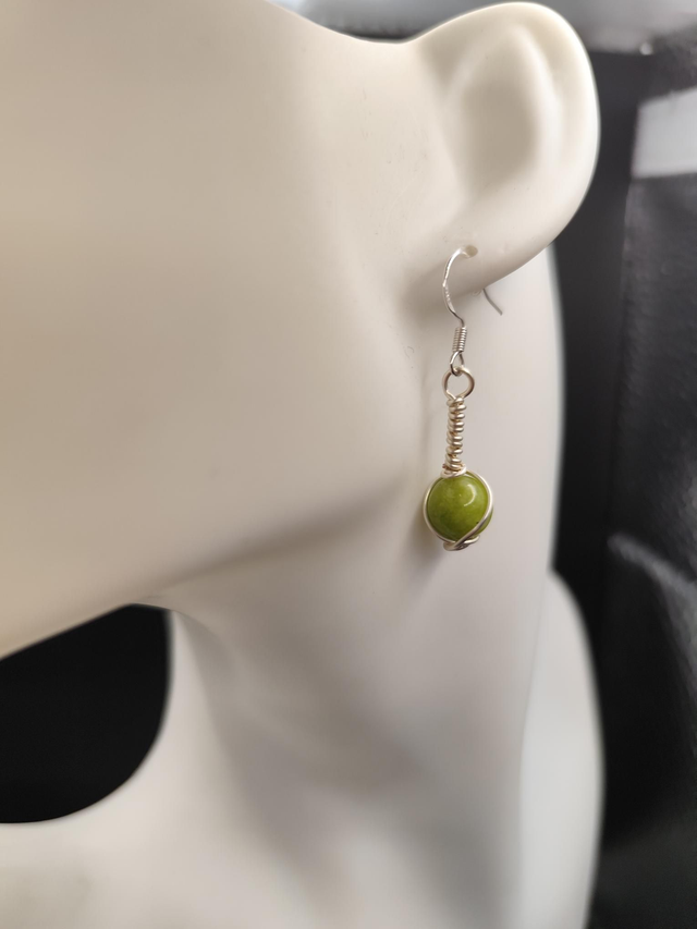 Hand crafted wire wrapped Peridot earrings with 925 silver hooks. Lovingly made on board narrowboat Deltic.